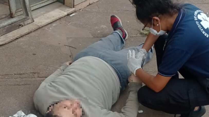 Un curioso hecho ocurrió este miércoles, pasadas las 13:10, en avenidas Uruguay y Comandante Espora, donde se descompensó una persona sobre la vereda.