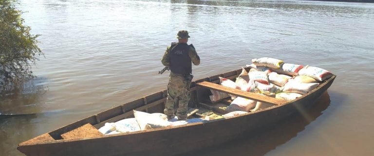 Al percatarse de la presencia policial, los involucrados abandonaron una embarcación, que estaba cargada de bultos, y escaparon hacia Brasil.