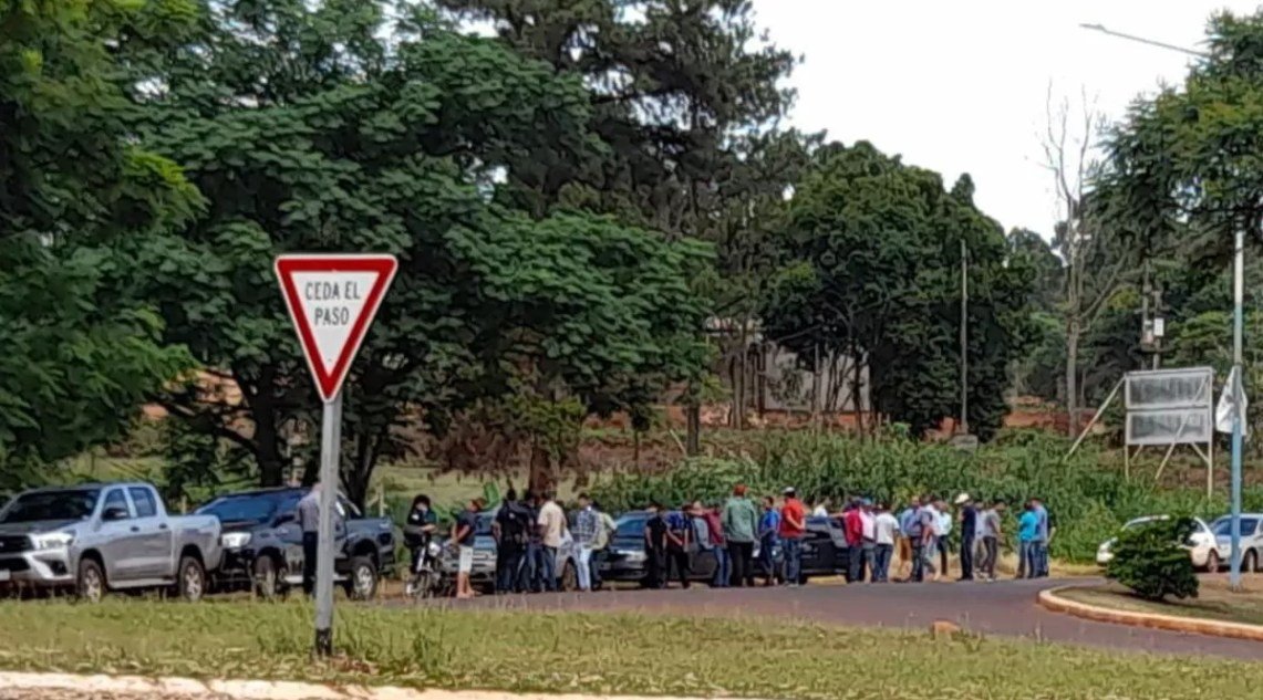 Unas cuarenta personas de Piñalito Norte y alrededores, se reunieron en la rotonda de acceso a San Antonio, exigiendo que se le devuelva un tractor incautado a un colono de la zona.