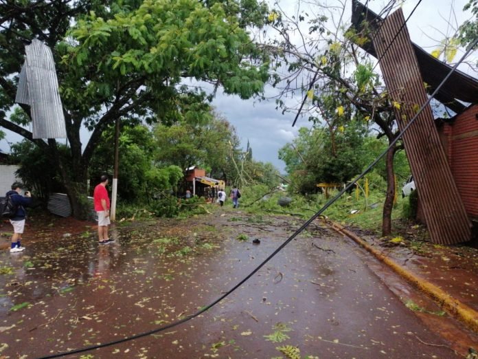 La localidad de Eldorado fue una de las más afectadas por el temporal de ayer, ya que se registraron caída de árboles, problemas con el tendido eléctrico y voladura de techos de varias viviendas. Sin embargo descartan que haya sido un tornado, sino que se trata de un temporal intenso.
