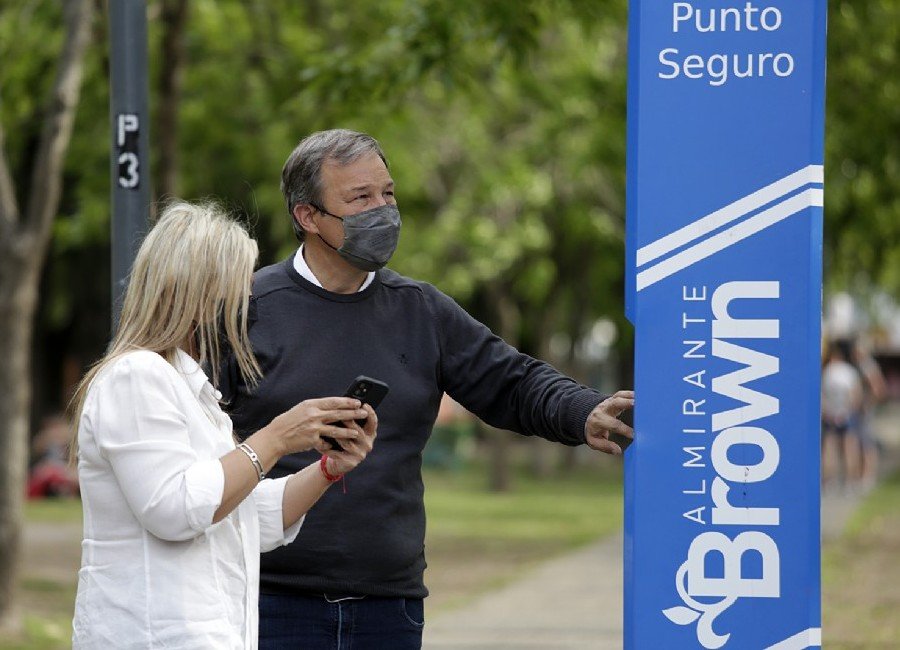 El Municipio de Almirante Brown avanza a todo ritmo con la instalación de “Puntos Seguros” en distintos espacios públicos de todas las localidades, los cuales cuentan con un botón de pánico con conexión directa al Centro de Operaciones Municipal (COM) para alertar sobre cualquier emergencia en la vía pública.