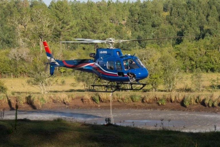 Envían el helicóptero hidrante y brigadista a proteger la línea de 500 KV en Ituzaingó