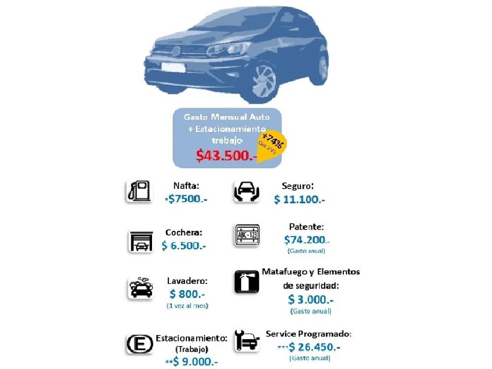 Este año el gasto de mantenimiento mensual de un auto en Argentina asciende a $43.500, un 74% más que en 2021.El Salario Mínimo Vital y Móvil, como referencia, acaba de ser aumentado a los $47.000 mensuales.