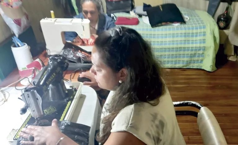 Un cuarto de la casa que se convirtió en un taller de costura, con dos máquinas de coser, bolsas de residuos, hilos y cámaras de bicicletas son los elementos de trabajo de Vanessa Vera y su amiga y socia Cecilia. Así se resume la historia de estas dos emprendedoras de Eldorado que se unieron para el trabajo en conjunto en plena pandemia de Covid-19.