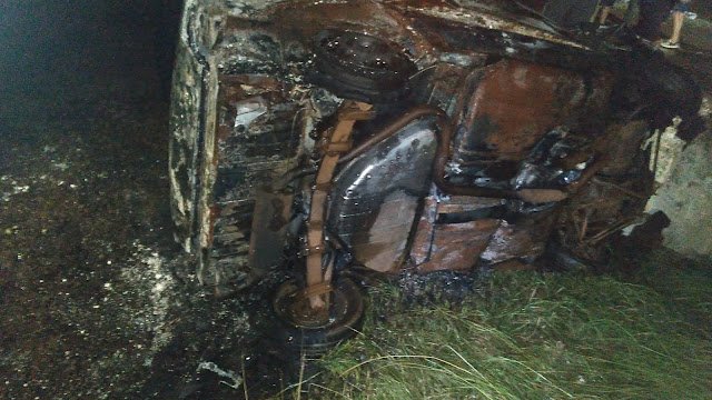 El conductor logra salir por sus medios dándose a la fuga mientras el rodado se imcendiaba. En el lugar trabajó Bomberos Voluntarios extinguiendo el incendio. Nadie resultó herido. Se realizan averiguaciones a los fines de establecer la identidad del otro conductor.
