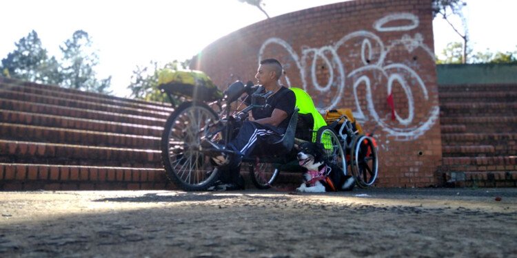 En diálogo, el atleta oriundo de Puerto Rico comentó que “comencé con el proyecto el 12 de marzo, viajo con una handbike, copia de una original, donde engancho mi silla, el canasto para la perra y llevo mi comida, la carpa y todo lo necesario”.
