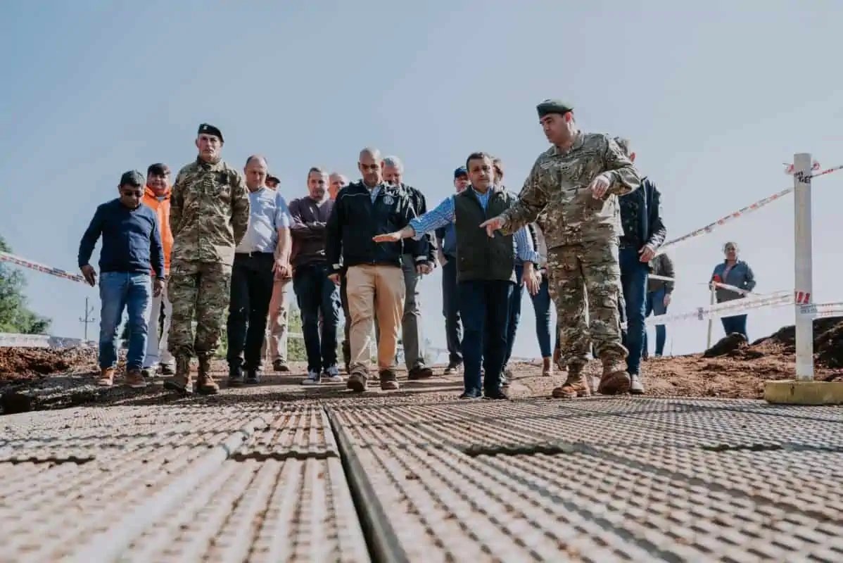 En el lugar, en contacto con los soldados encargados de la instalación, el mandatario se interiorizó sobra la capacidad de la estructura provisoria y sobre las obras del puente nuevo que en 10 meses estará terminado. Allí fue acompañado por el presidente de la Dirección Provincial de Vialidad, Sebastián Macías; el intendente de Alba Posse, Lucas Gerhardt; sus pares de 25 de Mayo, Mario Lindemann y de Colonia Aurora, Carlos Goringel y el comandante de Brigada Monte XII, Coronel Sergio Jurczyszyn.
