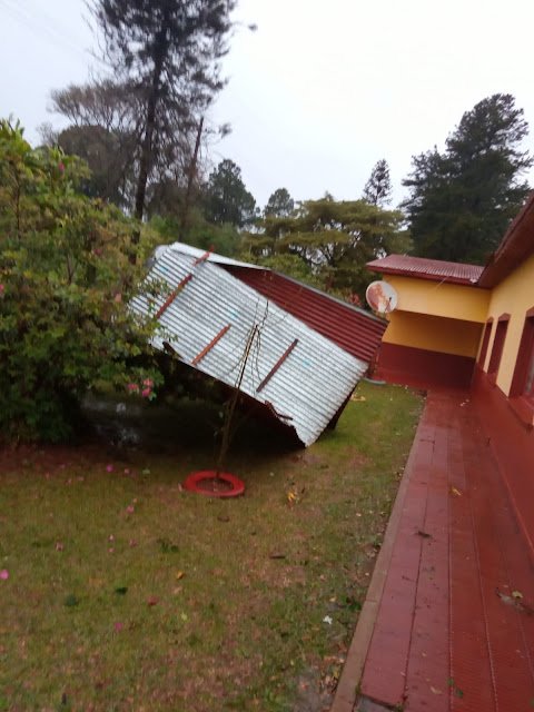 Debido a la tormenta y los fuertes vientos de esta madrugada la Escuela 410 sufrió la voladura de parte de su techo. La misma está ubicada en el ex kilómetro 1243 de la Ruta Nacional 14. Según denunció el director Pedro Rubén Dowbusz (52) cerca de las 7:15 llegó a evaluar las condiciones del establecimiento y se encontró con varias chapas en el patio. En total dos aulas quedaron completamente a la interperie.