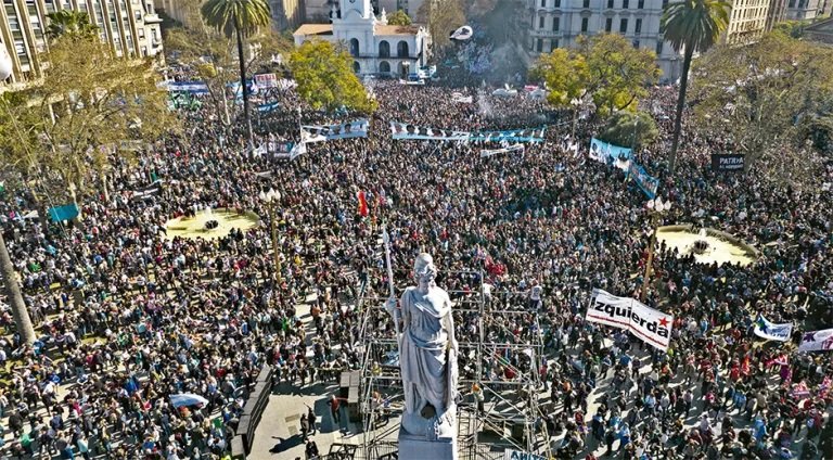 Por su parte, manifestantes que llegaron desde el mediodía a la plaza en las líneas del subte que desembocan en la zona cantaban en los vagones la marcha peronista, como en la Línea A y B.