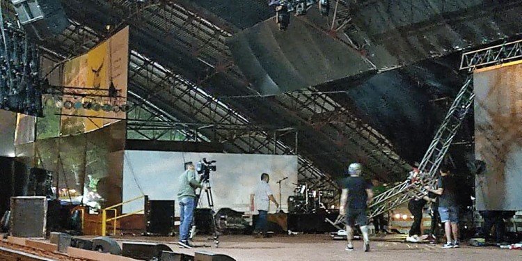 Voladuras de techos, cortes de luz y daños al escenario mayor de la Fiesta del Inmigrante en Oberá son algunos de los daños que ocasionaron los fuertes vientos.