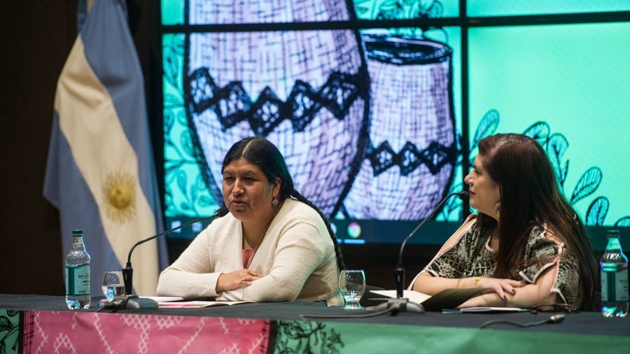 Las artesanas del textil o teleras como se las denomina por el trabajo en telar o las cesteras de las provincias de Santiago del Estero, Catamarca, Chaco, San Juan, Jujuy y Formosa confluyen en un auditorio repleto y atento, emocionado por momentos, y dialogan, intercambian, aunque también cuestionan los modos de abordaje ajenos a sus vidas donde otros se quedan con un crédito no merecido.