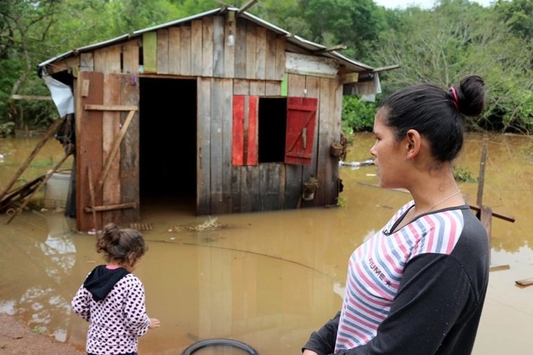 Mientras, Ramona Da Silva, que integra una familia de seis miembros, recibió cobijo en el salón de una iglesia católica y, escueta en las palabras, confesó que es la cuarta vez en el año que tienen que irse de su hogar porque el río Uruguay aumentó su caudal.
