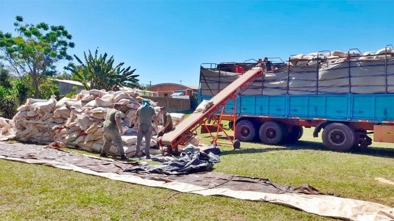 Desde allí siete camiones se desplazaron por las rutas nacionales 16, 12 y 14 hasta llegar a la costa del río Uruguay donde los granos se van sin ningún control en grandes embarcaciones de madera.