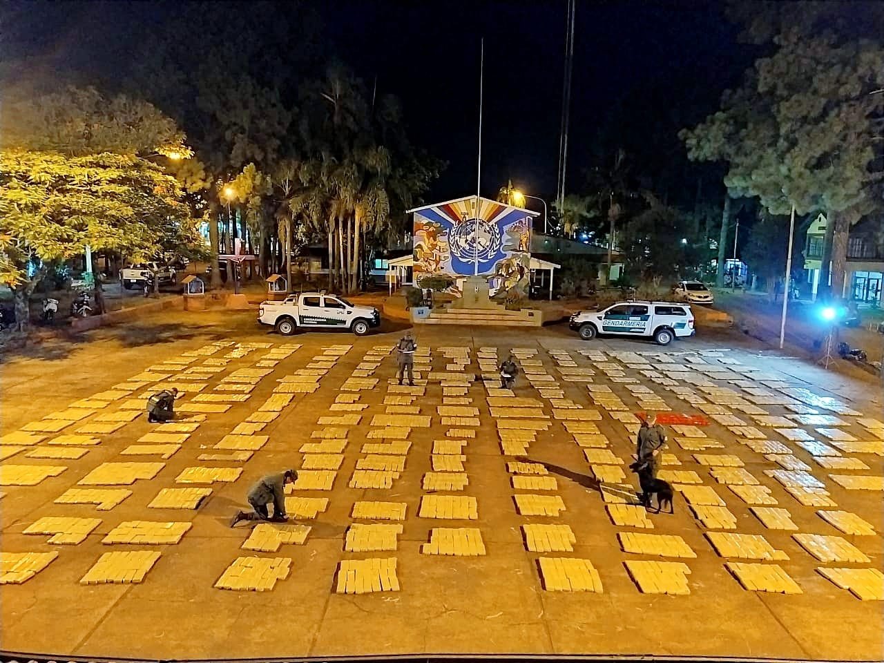 Los funcionarios se dirigieron rápidamente al lugar y observaron cómo un camión Ford 7000 color rojo, había embestido un poste de luz y quedado averiado a un lado de la ruta, en su intento por encontrar zonas sin presencia de uniformados. Al seguir con la requisa en la caja del vehículo, advirtieron la presencia de 253 bultos con paquetes similares a los utilizados para el transporte de estupefaciente, cubiertos con sandías y melones, que fueron utilizados para disimular la carga.