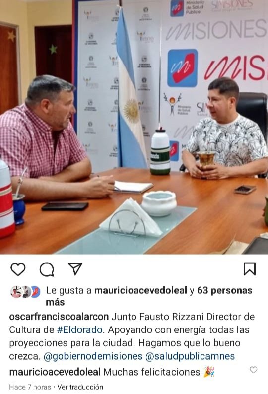 Hoy en una publicación oficial del Ministerio de Salud de la Provincia , el Ministro Oscar Alarcón confundió al Director de Cultura zona Norte Fausto Rizzani con el director de Cultura de la Municipalidad de Eldorado José Domingo Duarte , cuando notamos la equivocación desde nuestro Portal llamamos al Ministerio de Salud y le comentamos de la equivocación y nos contestaron que si así estaba escrito en la Página Oficial así era , le volvimos a decir que El Director Fausto Rizzani tiene su vivienda en Eldorado pero que no era el Director Municipal de Cultura y después de decirnos algunas cosas suaves digo para no hablar mal de la persona que nos atendió.
