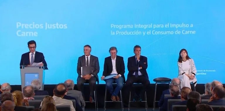 El minsitro de Economía Sergio Massa, y el Secretario de Comercio Matías Tombolini, presentaron este lunes un nuevo programa de precios controlados para siete cortes populares de carne. Será un programa que pondrá a disposición del pùblico, de todo el país, 15.000 toneladas mensuales de carne a un precio 30% menor al que se ofrece hoy en el marcado. El programa entrará en vigencia el viernes próximo, y se extenderá hasta el 31 de marzo. «¿Porquè le prestamos tanta atención a la carne? porque cuando miramos la inflación de enero vemos que el golpe más importante es la carne», afirmó el Ministro Massa, que además confirmó que continúa el plan para reducir la inflación, y prometió anunciar más medidas para la micro economía en los próximos días. «Vamos a estabilizar la economía argentina para hacerla competitiva, y para que el ciudadano no sufra los serruchos que aveces se dan en la economía argentina.