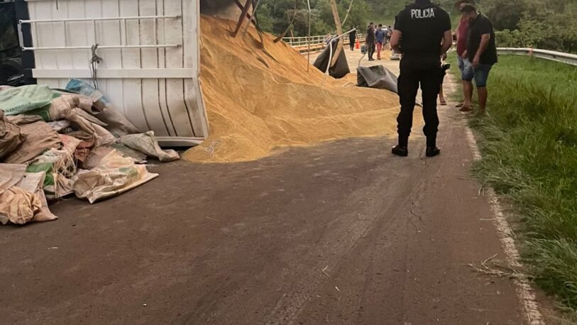 Al parecer, el camión Mercedes Benz con acoplado iba cargado con treinta toneladas de granos de soja en sentido Colonia Aurora- El Soberbio y al llegar a la altura del puente sobre el Arroyo Chafariz, perdió el control y terminó despistado y volcando sobre la cinta asfáltica.