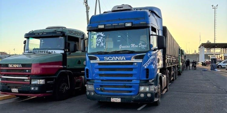 También se pudo saber que los siete hombres que conducían los camiones fueron detenidos. Los siete tienen nacionalidad paraguaya y trabajan para distintas empresas de logística.