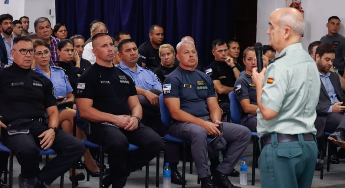 Durante la actividad, Marinoni explicó que: “La Guardia Civil Española es una fuerza que viene colaborando con la Provincia hace tiempo. Para nosotros es gran modelo, que cuando llevamos adelante todo este camino para poder tener egresados (oficiales licenciados con un título de grado) fue el modelo que miramos y seguimos para obtener resultados en lo inmediato”.