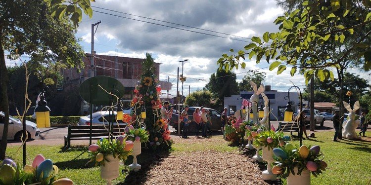 Desde el último fin de semana largo del mes de marzo, el paisaje urbano de Capioví se vio colmado de conejos, golosinas, huevos y toda la ornamentación alusiva a las Pascuas.