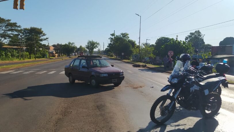 El impacto del siniestro hizo que los ocupantes de la moto cayeran al asfalto, resultando con lesiones que obligaron su traslado al Hospital Madariaga.