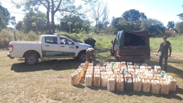 Efectivos de Gendarmería Nacional interceptaron un vehículo en Colonia Mado y detectaron que en el mismo se trasladaban de manera irregular 78 bidones, totalizando 1.400 litros de gasoil.