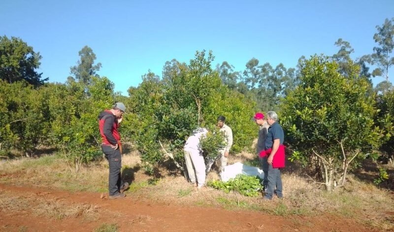Con la presencia de los directores de la Producción en el INYM, Nelson Dalcolmo y Claudio Marcelo Hacklander, los productores, junto los técnicos Máximo Petruk Nowosad y Cristian Olivera, compartieron las técnicas de cosecha de rama madura, que consiste en cortar durante la zafra aquellos gajos con más de dos años de crecimiento, con un grosor de una pulgada (2,5 cm) aproximadamente y que poseen la mayor carga de materia prima, de forma tal que lo remanente permitan a las plantas continuar con su actividad fisiológica y productiva.