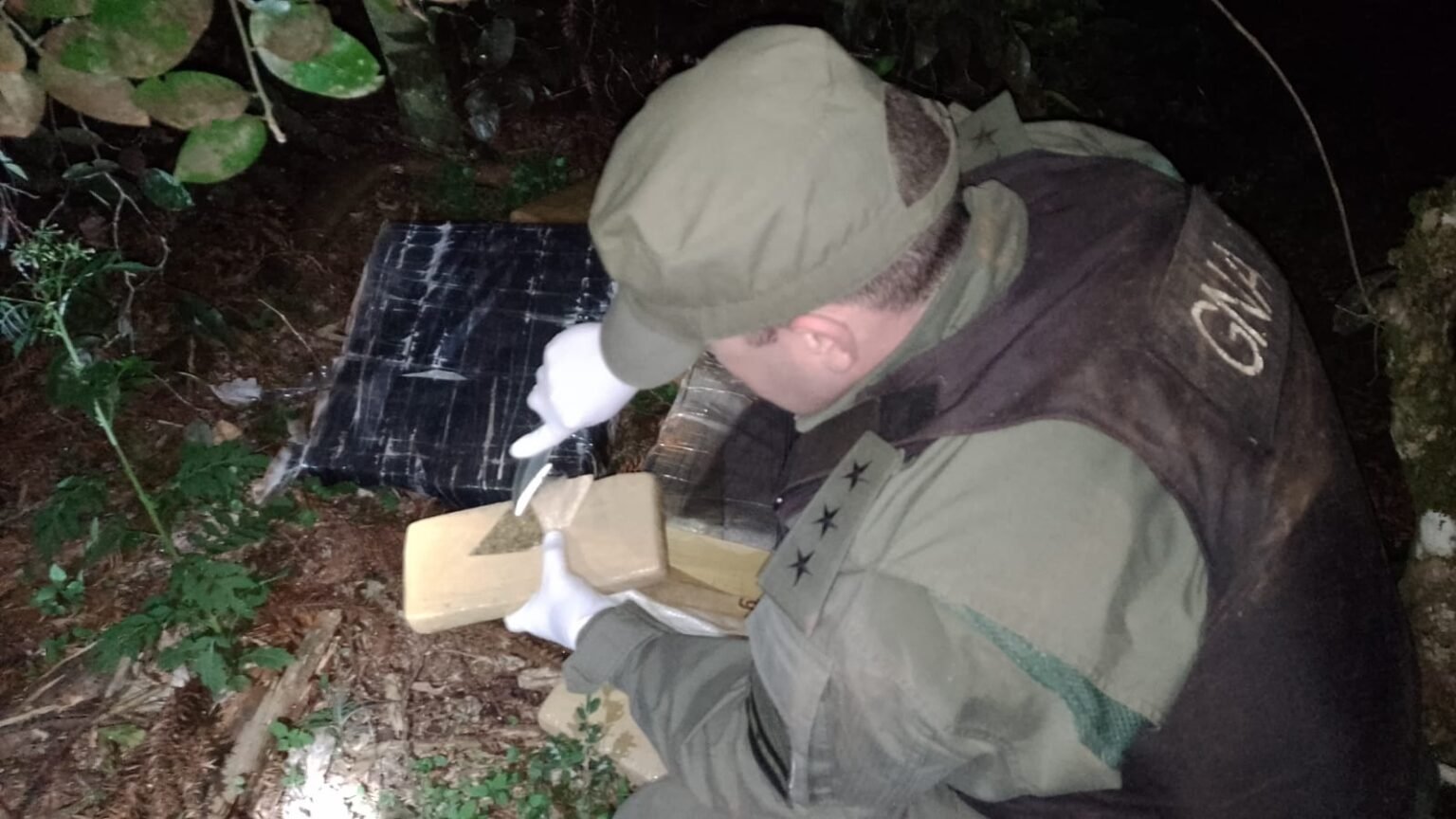 Ante tal situación se solicitó apoyo al Escuadrón 11 “SAN IGNACIO” destacando patrullas por las zonas aledañas a fin de dar con los responsables de esta actividad ilícita, detectando oculto entre la maleza y disimulados con ramas y pinos cortados, varios bultos acopiados y de grandes dimensiones, conteniendo un total de 3.967 paquetes rectangulares, sin poder ubicar a las personas.