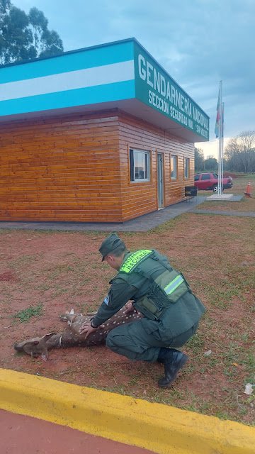 Un ejemplar de ciervo axis falleció en la tarde de ayer en de San Vicente, luego de ser víctima de delitos contra la fauna silvestre. El animal fue hallado por un comerciante que lo trasladó al asiento de la Sección Vial “San Vicente”, dependiente del Escuadrón 49 “San Vicente” de Gendarmería Nacional, donde recibió asistencia. Sin embargo, no pudo sobrevivir a las graves lesiones que presentaba, entre ellas la falta de su cornamenta.