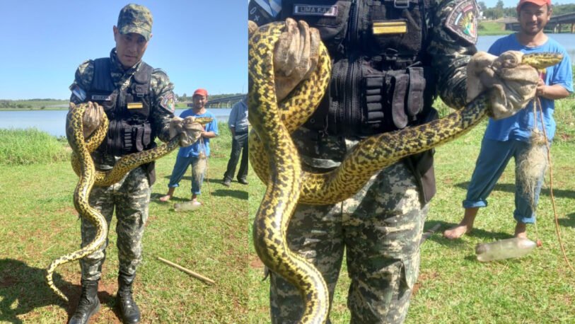 Por ello, mientras que los uniformados de la D.A.M preservaban el lugar del hallazgo, la dirección especializada fue comisionada al sitio, donde lograron rescatar a la boa (Eunectes Notaeus) de los hilos de la red y acto seguido, luego de constatar su buen estado de salud, fue devuelta a su hábitat sin mayores complicaciones.