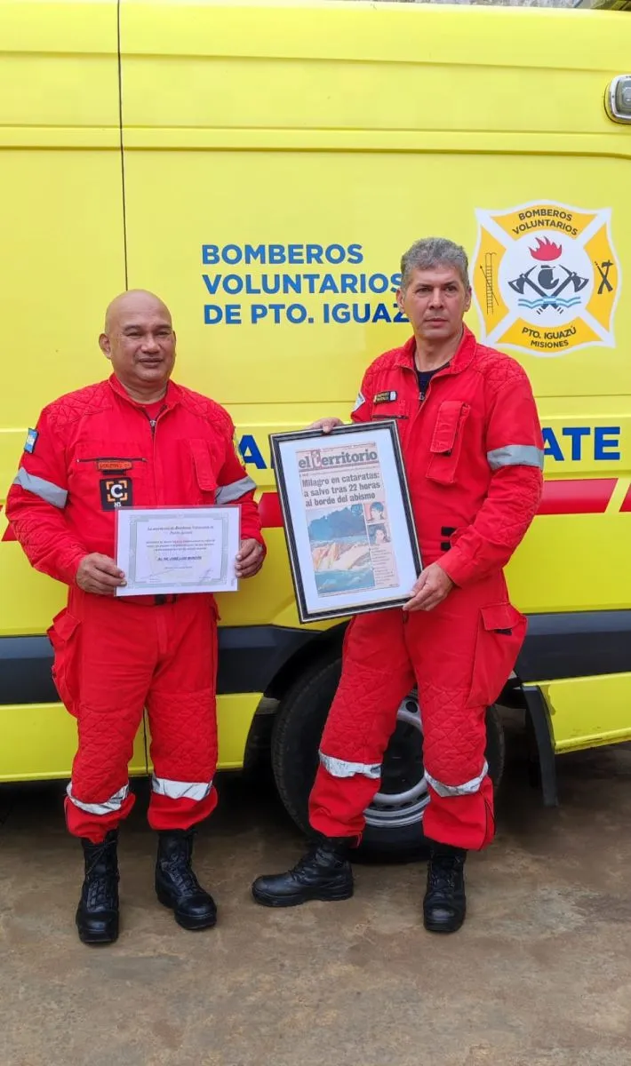 La jefatura de Bomberos Voluntarios Iguazú reconoció este viernes a los integrantes de grupo GERSI de la institución, que fueron claves para salvar a dos jóvenes que permanecieron 22 horas prendidos de un árbol y de unas ramas de un islote situado en medio del río Iguazú en Cataratas, a escasa distancia del salto San Martín. Los hombres sufrieron un accidente en el río cuando la embarcación en la que se desplazaban sufrió un desperfecto.