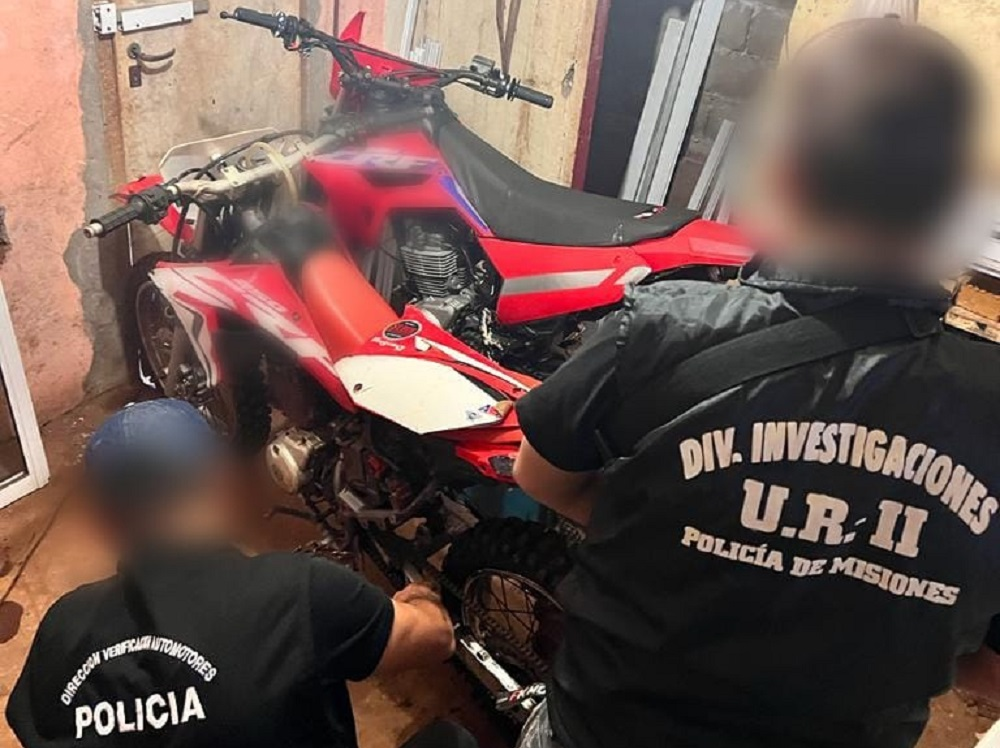 Una vez que obtuvieron todos los datos necesarios, con las tres órdenes de allanamiento dispuestas por el Juzgado de Instrucción 2 de Oberá, irrumpieron en los inmuebles, de donde se secuestró documentaciones apócrifas, tres chapas patentes correspondientes a otros rodados y tres motocicletas, dos de ellas con pedido de secuestro por robo desde Buenos Aires y otra no inscripta al sistema con un motor que no corresponde al vehículo.