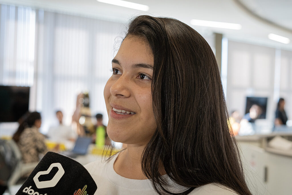 Otra alumna de cuarto año del Bachillerato N° 12 en San José, se encontró con nuevas posibilidades tecnológicas. “Nunca tuve la oportunidad de conocer algo como esto. Me sorprendí con todo el recorrido por la variedad de propuestas tecnológicas”, agregó Florencia Glinka.