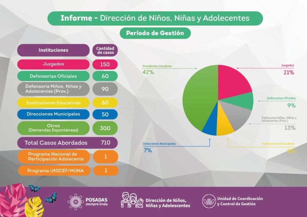 La Dirección de Niños, Niñas y Adolescentes de la Municipalidad de Posadas abordó, en septiembre, un total de 710 casos en colaboración con juzgados, defensorías y establecimientos educativos. Este compromiso no solo se limita a brindar respuestas en situaciones que requieran asistencia, sino también en ofrecer un seguimiento constante a las familias para garantizar los derechos de los niños.
