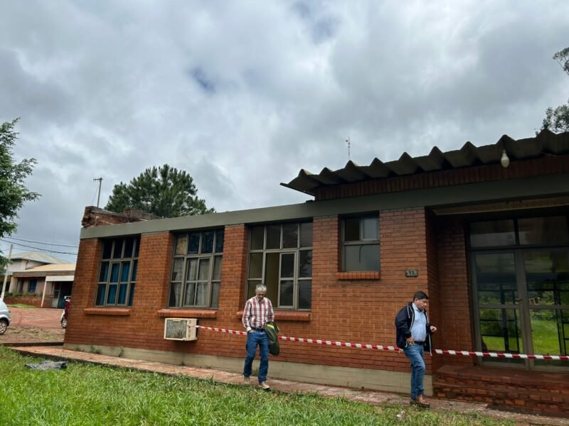 El Ministro de Salud Pública, Oscar Alarcón junto a integrantes del gabinete y del equipo de zona norte Paraná se trasladaron hoy hasta Colonia Delicia (Mado) para inspeccionar los daños que se registraron en el edificio del Hospital de Nivel I, en la noche de ayer tras las fuertes ráfagas de viento e intensas lluvias que se registraron en la zona.