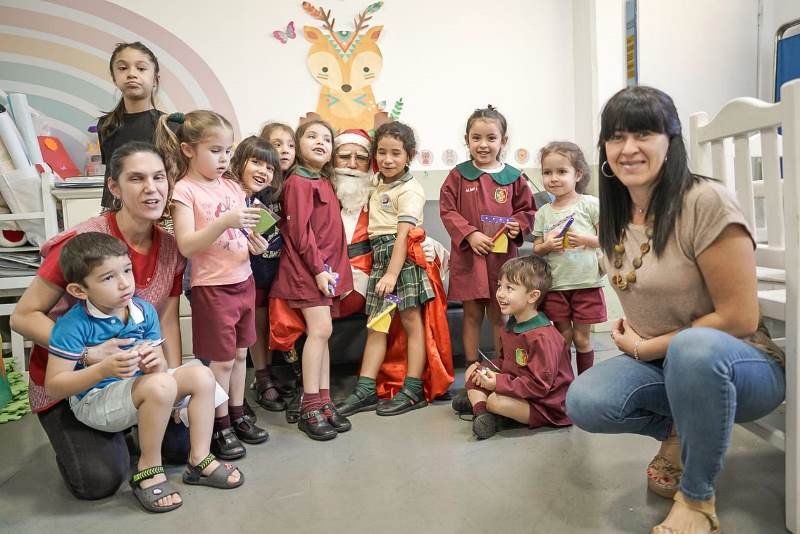 Esta mañana, los niños que asisten a la guardería que funciona en la planta baja del Ministerio de Salud recibieron la visita de Papa Noel.