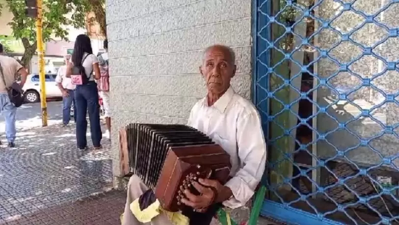 En diálogo contó un drama familiar lo empujó a salir a la calle a tocar el instrumento y poder ganarse unos pesos. Las personas que transitan por las cercanías disfrutan un poco de música, que maquilla su triste historia.