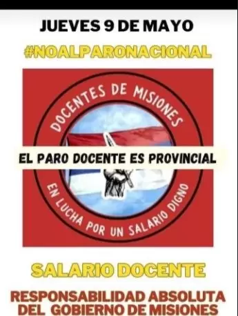 El jueves 9 de mayo, bajo el hashtag #noalparonacional, docentes de Misiones enviaron un mensaje claro y diferenciado al Gobierno provincial, separándose del Paro Nacional convocado por la Confederación General del Trabajo (CGT).